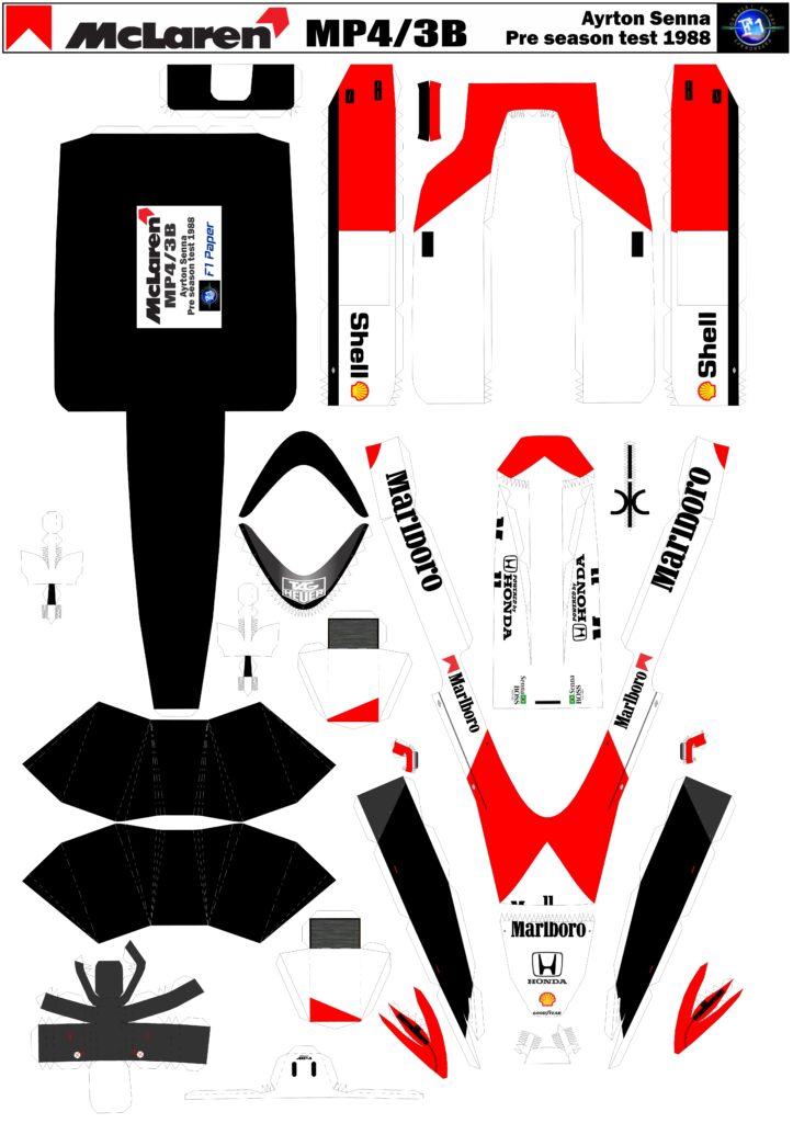 Plantilla de Papercraft Papercraft McLaren MP4 Ayrton Senna 1988 Gratis en PDF. En papelest recopilamos las mejores maquetas 3D recortables para que los puedas descargar de forma totalmente gratuita, imprimir cómodamente y montar en casa. Más maquetas recortables AQUÍ